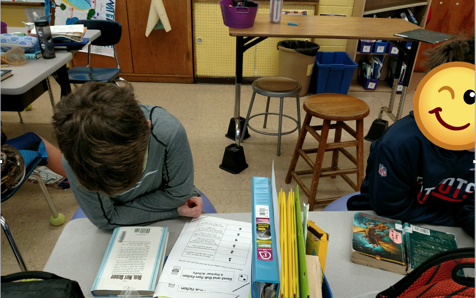 Students are allowed to read anywhere they would like in the room. (We have a lot of flexible seating options and they are used to moving around the room.)