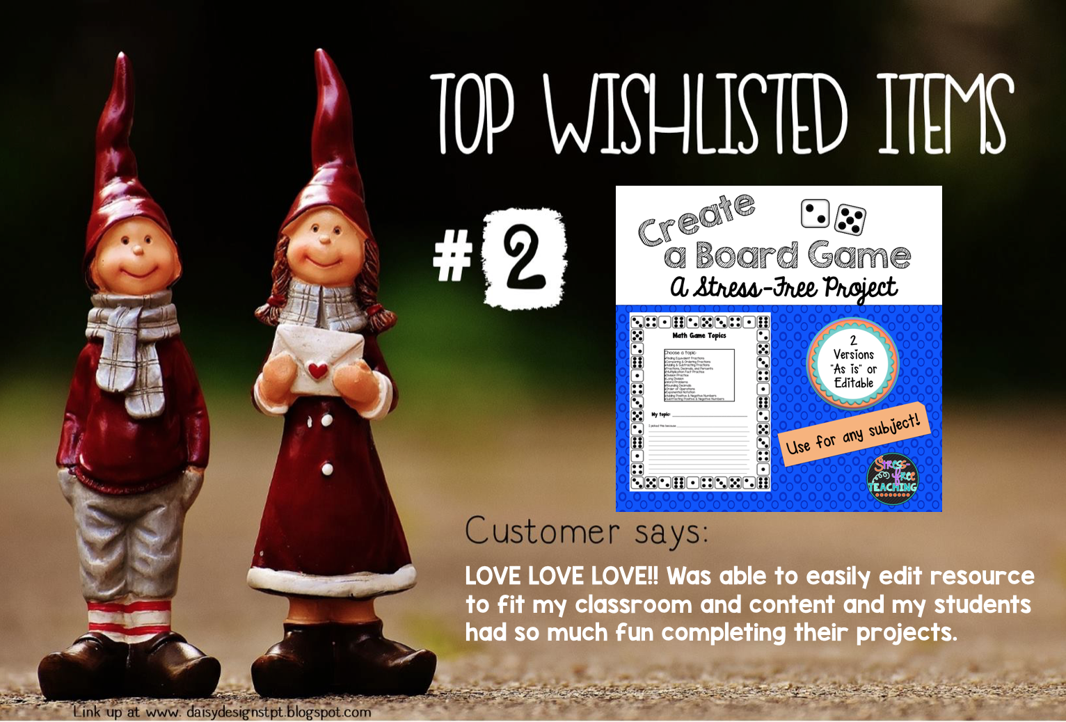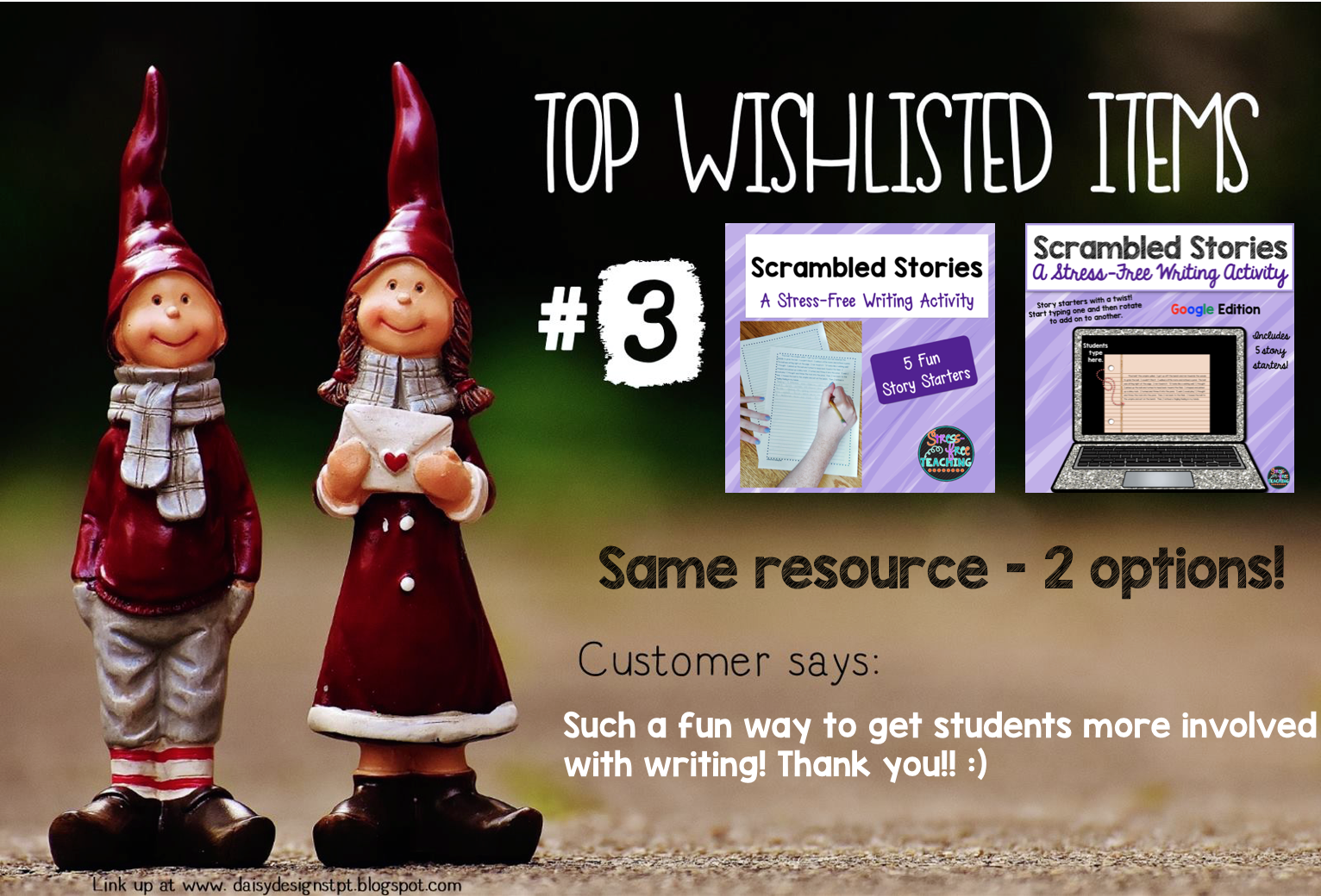 I am SO excited to join up with Daisy Designs for a Wish List Linky describing the top 3 wish listed items in my TpT store.