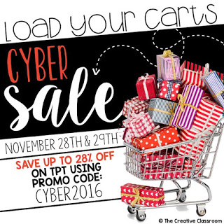The Teachers Pay Teachers Cyber Sale begins tomorrow and this linky will be the perfect way for me to find more resources to add to my cart. Woo hoo! All stores will be on sale and then there is a promo code, too. Don’t you just love that graphic created by The Creative Classroom?